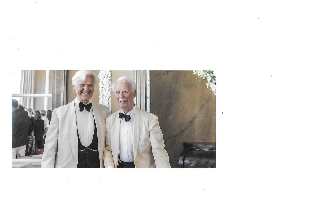 En nu wil ik een paar herinneringen aan mijn oudste broer ophalen. Ik had die herinneringen willen vertellen op de lunch die we hadden toen hij 90 werd, maar dat heb ik toen niet gedaan, dus dat ga ik nu inhalen. Hij was 5 jaar oud toen ik werd geboren en ik was 13 toen hij in Delft ging studeren. Alle vijf oorlogsjaren zat hij dus op school. Wij hadden in onze eetkamer leslokalen van het Lorentz Lyceum. In de pauze vermaakten de jongelui zich in ons tuintje. In de winter wilden de jongens scholletje triesten op ons piepkleine vijvertje. Scholletje triesten is een Brabantse uitdrukking: heel hard rennen over het ijs, dat eigenlijk te dun is en hopen dat je er niet doorheen zakt. Een keer durfden de stoere jongens het niet en vroegen aan mij of ik het wilde doen. Ik was toen een klein poppetje. Ik deed het en de jongens riepen ‘bravo’ ik vond dat natuurlijk prachtig. Hij is er later wel een keer door heen gezakt. Mijn grote broer was soms een vervelende plaaggeest . Een keer wilde ik in mijn bed stappen en toen lag hij eronder, schreeuwde en probeerde mijn enkel te pakken. Ik schrok mij wezenloos en weet het dus nog steeds. En, ik mocht nooit zijn piepkleine Dick Bos boekjes lezen. Later toen hij in Delft studeerde gaven mijn ouders een feest voor de studenten. Ik zat bovenaan de trap te kijken naar al die mooie mannen en prachtig aangeklede meisjes. Ik vond mijn broer de mooiste.